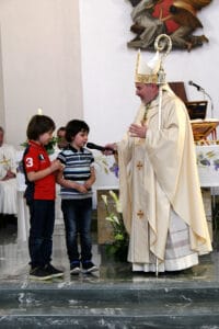 Tantissimo impegno, ma grande soddisfazione da parte di tutti per onorare la Madonna e per accogliere il nostro nuovo Vescovo che ha percepito l’unione e la solidarietà della nostra piccola comunità e commosso ha abbracciato i bambini incoraggiandoli a mantenere intatta la purezza del loro spirito.