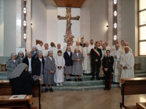 nella chiesa dedicata all’Annunziata, si è svolta la celebrazione eucaristica presieduta dal Vescovo, mons. Daniele Salera. Una messa molto partecipata da sacerdoti, diaconi e amici di Montanaro e di altri paesi e anche dagli alunni della scuola che hanno vissuto intensamente questo momento di preghiera unendosi al canto del coro parrocchiale e lasciandosi coinvolgere dalla toccante omelia del Vescovo.