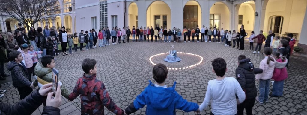 E per concludere, nel cortile della casa madre, un’ultima preghiera con il canto della Salve Regina cantato da tutti col cuore rivolto al cielo, intorno all’ancora simbolo dell’anno giubilare e ai tanti lumini accesi, uno per ogni bambino. Un momento che difficilmente potrà essere dimenticato da noi genitori per l’esempio che i nostri figli ci hanno lasciato con l’impegno di tenere accesa la luce quale segno di coraggio per seguire i propri sogni e ideali.