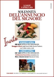 Quest’anno il 25 marzo, corrispondeva al lunedì della Settimana Santa, ma essendo la festa dell’Annunciazione molto importante, la Chiesa la celebra in modo solenne lunedì 8 aprile.