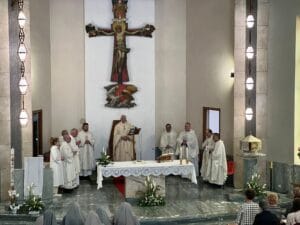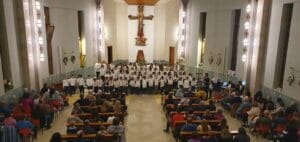 Nella seconda parte della celebrazione ci si è calati in un’atmosfera diversa, ma ugualmente intensa, di preghiera e raccoglimento: i bambini hanno guidato all’esterno della Chiesa il corteo delle famiglie e, avvolti dal buio della sera, ma alla luce dei lumini che ognuno di loro teneva in mano, ci si è uniti in preghiera nel chiostro innalzando a Maria una voce unanime a chiedere protezione, conforto, pace.