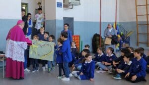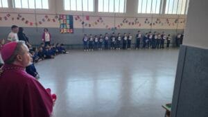 Nella giornata di martedì 25 marzo, in occasione della festa dell’Annunciazione, abbiamo avuto l’onore di ospitare presso la nostra scuola primaria paritaria Figlie di Carità il nuovo Vescovo di Ivrea, mons. Daniele Salera. I bambini l’hanno accolto durante un momento di festa e di gioco; erano entusiasti della sua presenza e questo si è percepito moltissimo! Anche il Vescovo ha espresso la gioia per l’accoglienza ricevuta e si è lasciato coinvolgere nel gioco dei bambini creando un clima ancora più festoso! Gli alunni della classe prima, a nome di tutti, gli hanno consegnato un quadro eseguito dal gruppo che frequenta il corso di arte, pieno di colori e di significato, il quale rappresenta tutti i bambini della nostra scuola che formano un grande cuore colorato. Questo dono, offerto al Vescovo come augurio per il suo nuovo ruolo e come ricordo del tempo trascorso con noi, è stato da lui gradito e ricambiato con parole ricche di amicizia e incoraggiamento che hanno emozionato alunni e insegnanti.